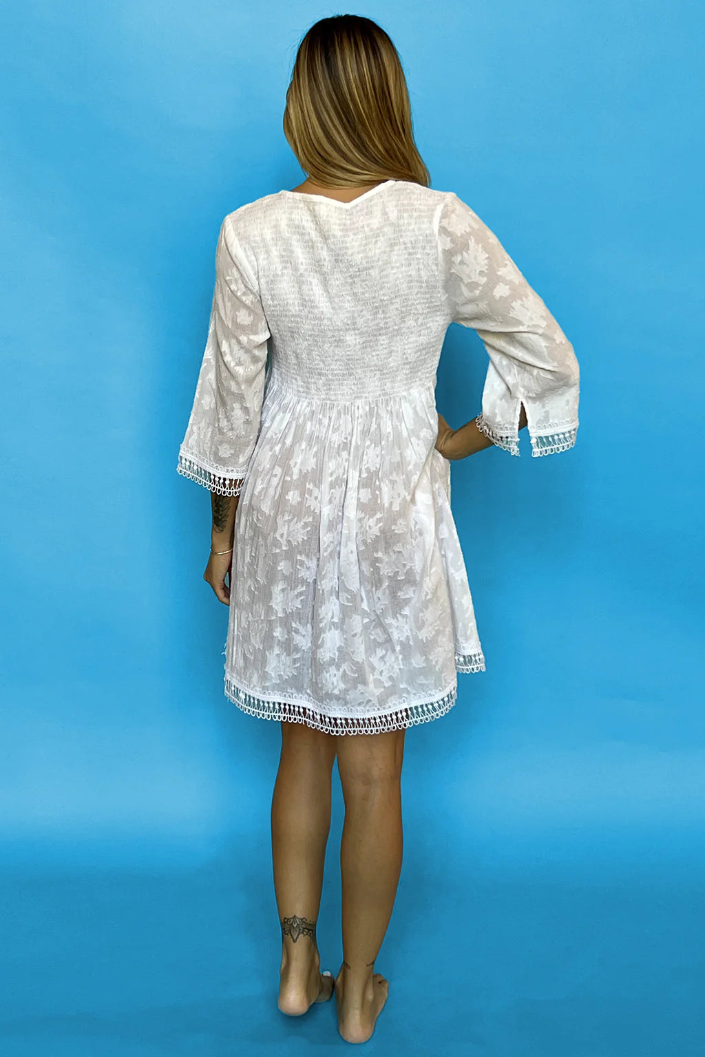This cotton V-neck dress is perfect for transitioning from the beach to lunch. The short length provides coverage while the fabric is light and breathable. From sunbathing to dining, this versatile dress is an essential addition to your vacation wardrobe.