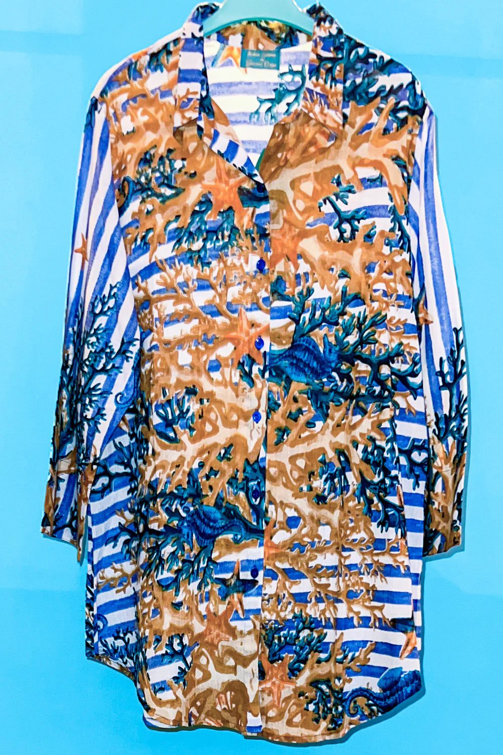 This 100% cotton dress features an open front design, perfect for adding a touch of modern flair to your wardrobe. Simple yet stylish, this dress is inspired by a maritime theme - perfect for the fashion-forward individual.