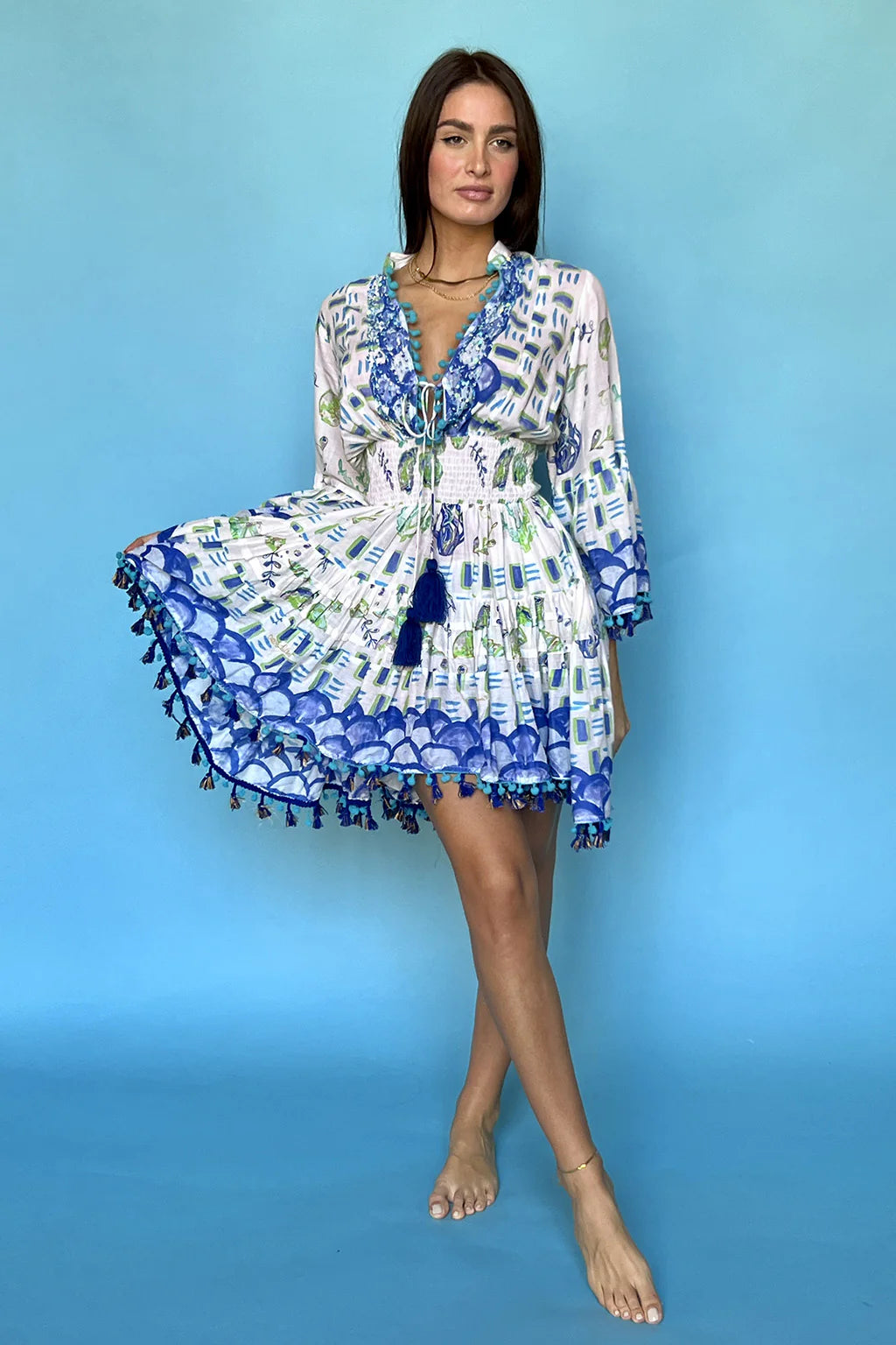 Crafted from luxurious cotton, this elegant short dress features a flattering V-neck for a touch of sophistication. Perfect for any occasion, this dress will make a versatile and stylish addition to your wardrobe. Elevate your look with this UNIC piece.